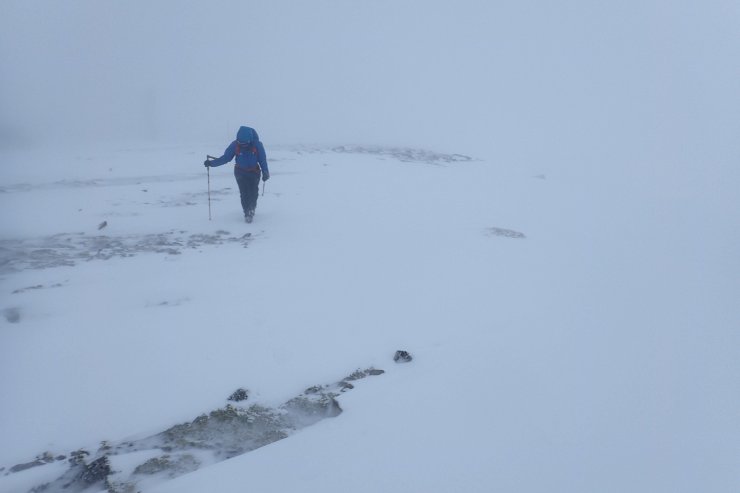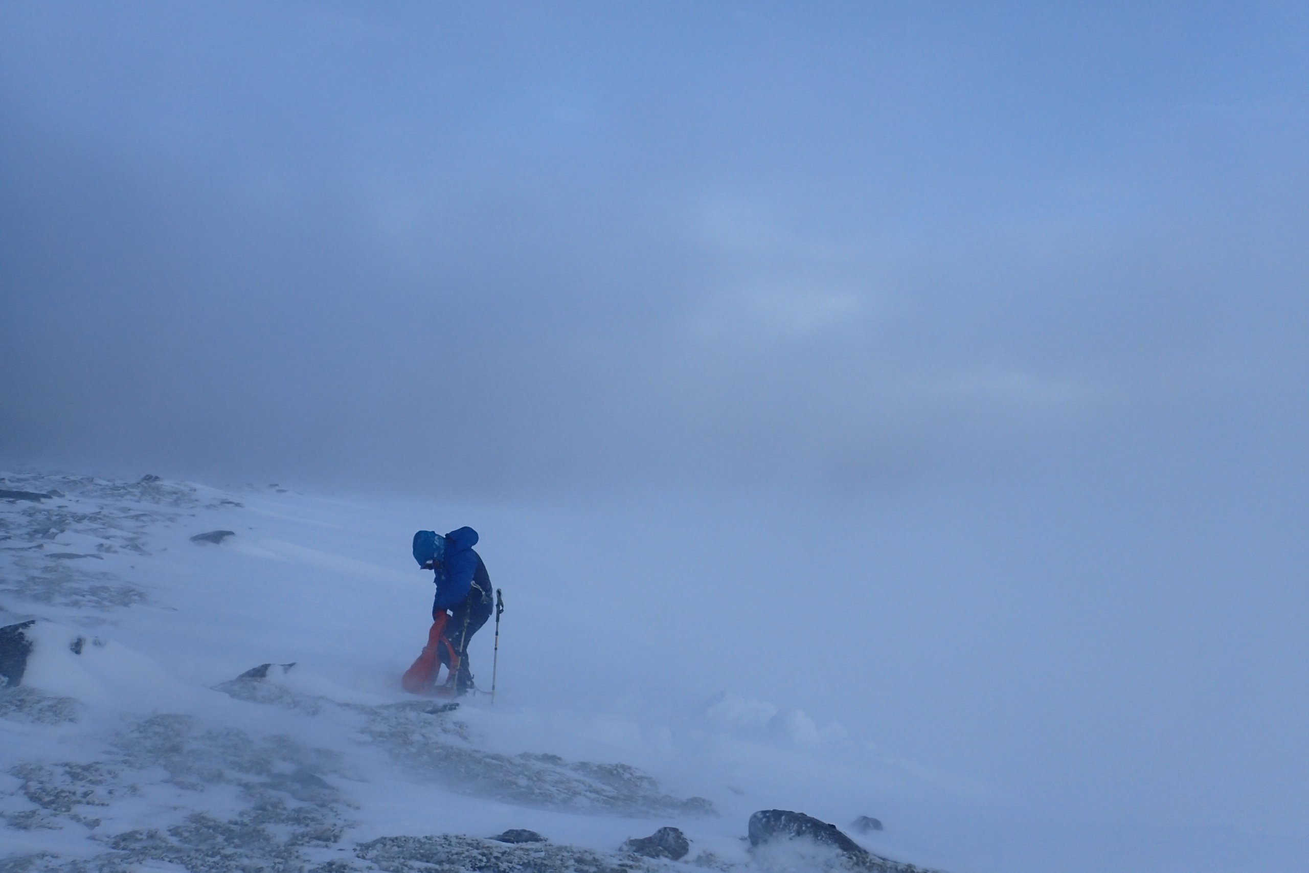 On the way down the hill there were a few breaks in the cloud. Although visibility remained poor at this level due to blowing snow for the time I was on the hill, there were some clear spells later on.