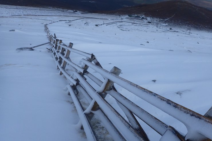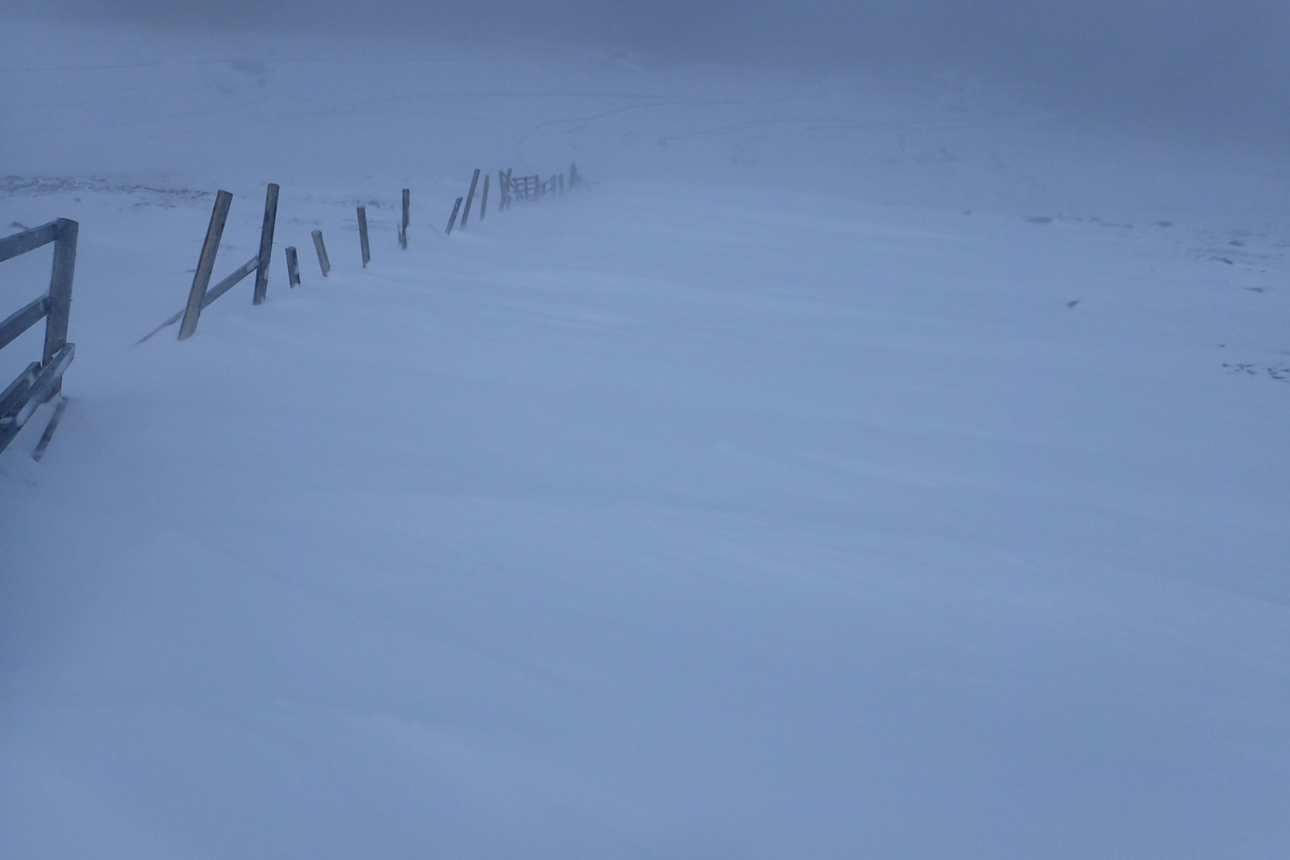 Iced-up snow fence. The same fence as in yesterday’s blog (although slightly higher up the hill side). I put this in to show how much snowier it as at this level (about 900m) than it was yesterday.