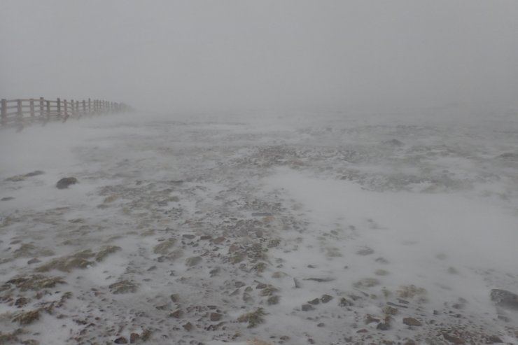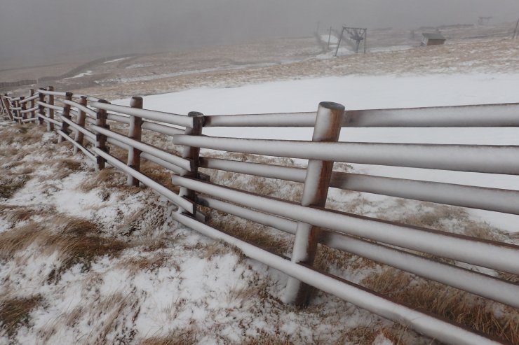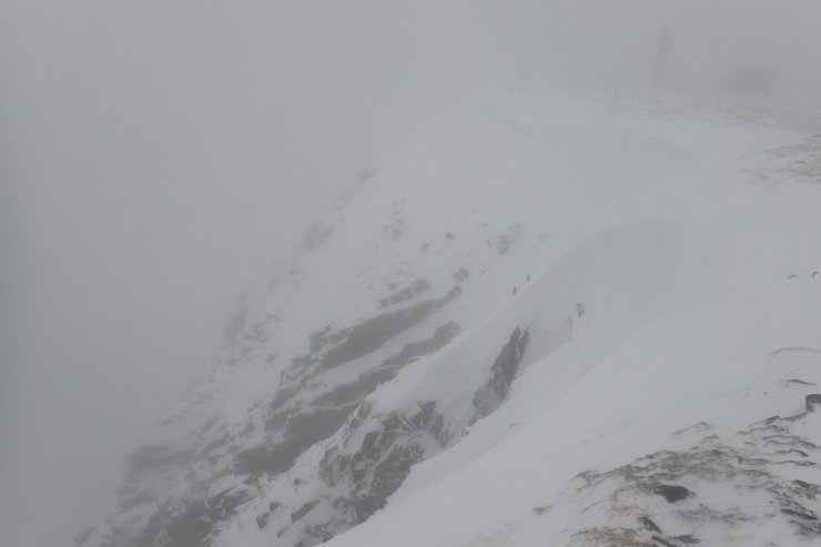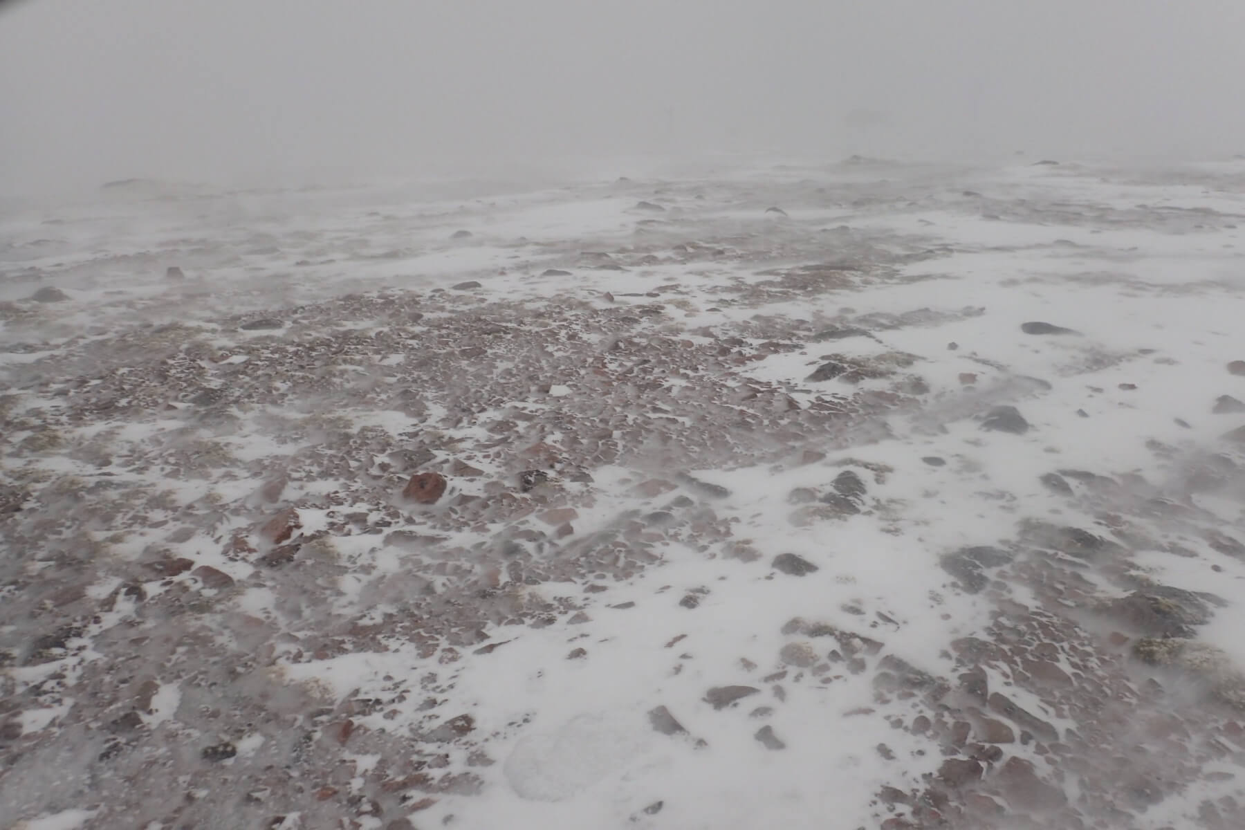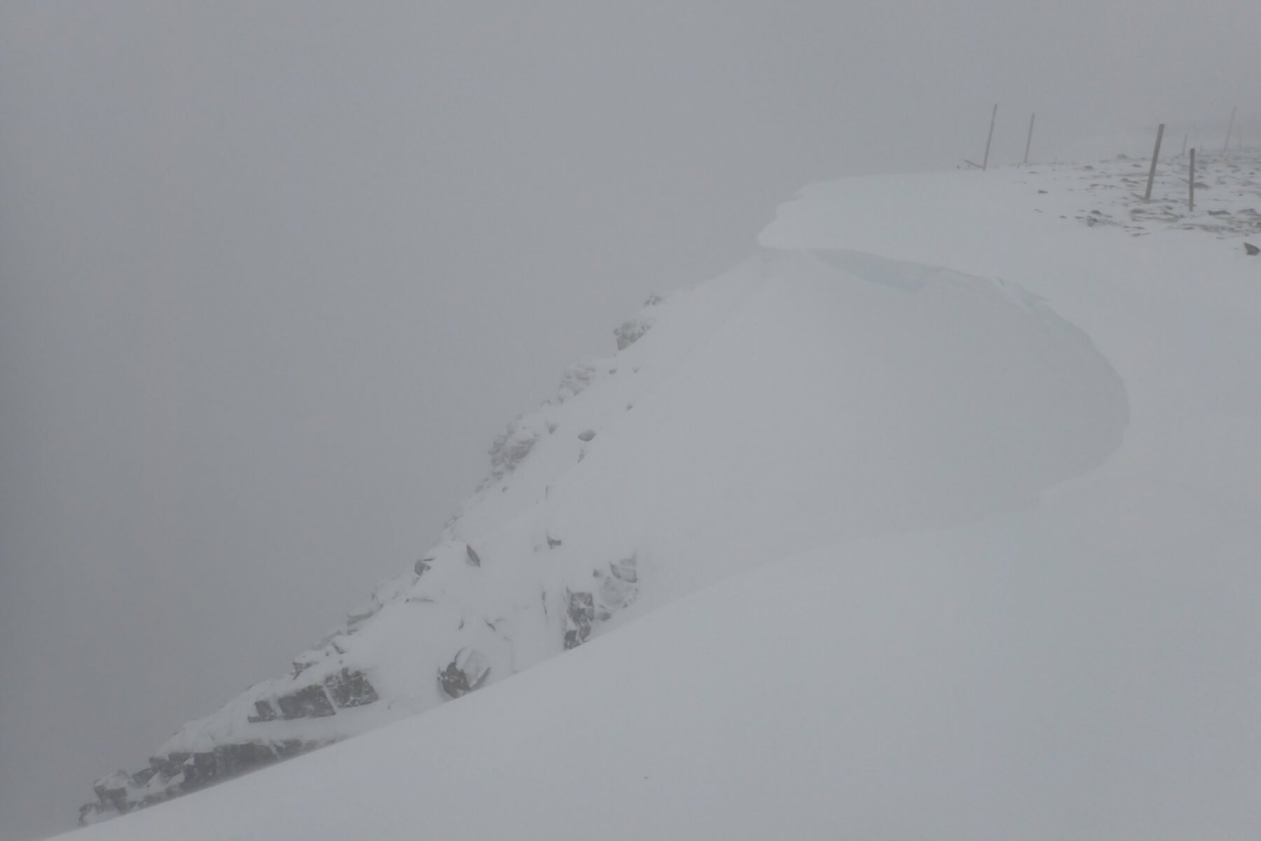 Winter made return to the higher summits today with some snow showers through the day and a slowly dropping freezing level. The temperature at 1200 metres dropped below freezing at around 2 am last night, and by 2 pm this afternoon it was around -2°C. There were some heavy snow showers coming through, and in the strong South-Westerly winds it felt pretty wild on the tops. However, things still felt quite soft and wet under a thin veneer of ice, and it will take a few days for things to properly freeze up again at higher levels. A few days of colder conditions are expected, and this should improve winter conditions.
