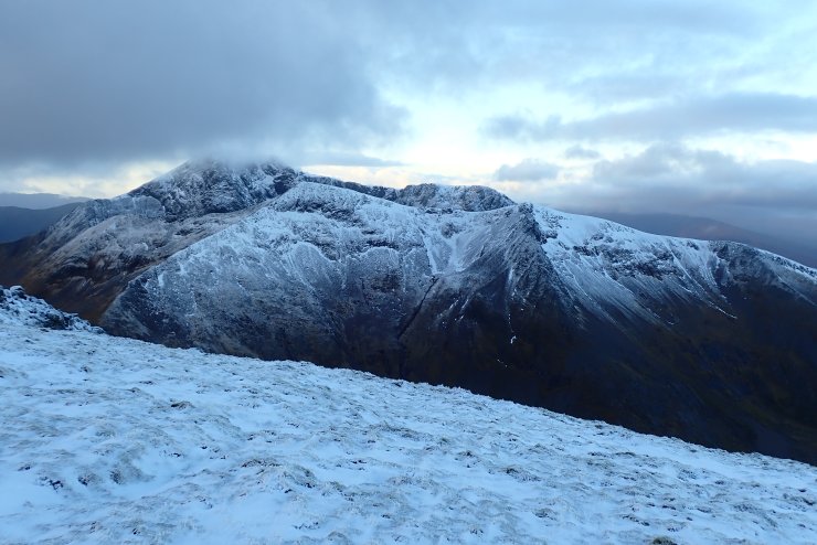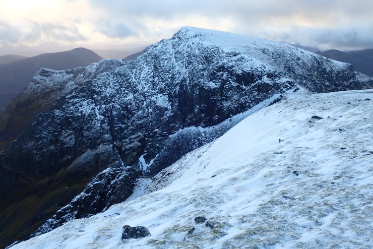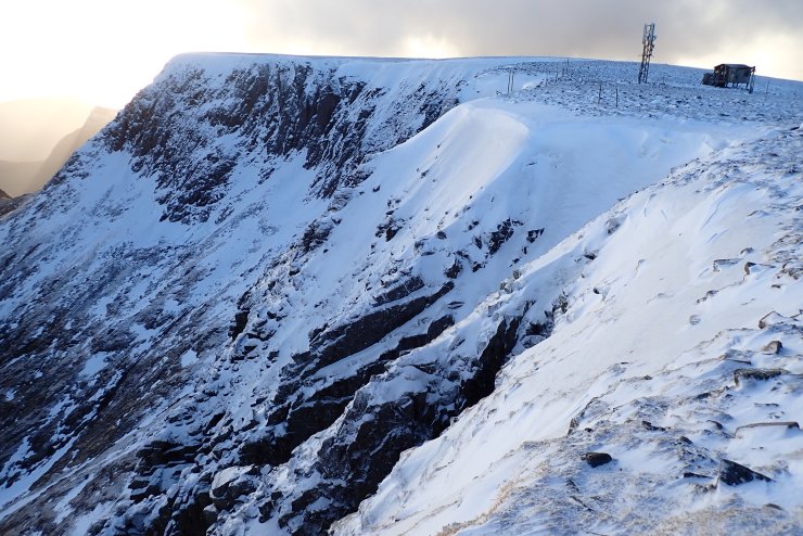 There was a dusting fresh snow overnight, and as can be seen here at the top of Coire an Lochan, this was drifting in the wind. However, fresh deposits were generally very shallow.