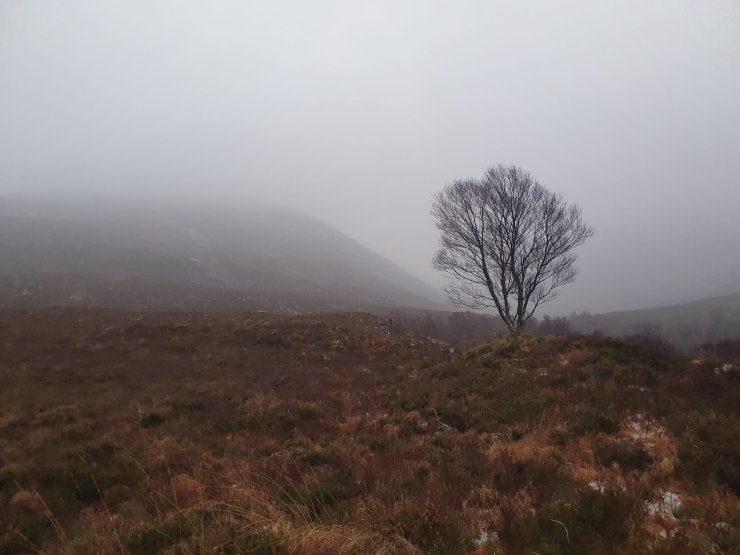 Misty and murky at the seven minute tree on the walk it. The view was very similar when I passed the tree on the way back down several hours later.