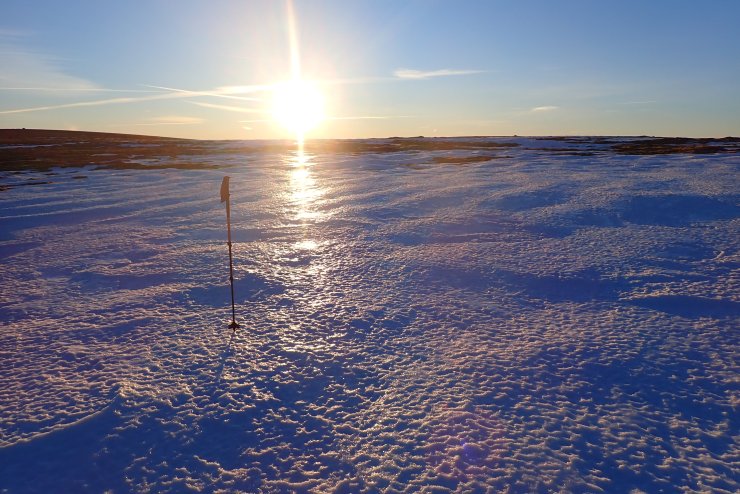 Back in Locbaher, the air temperature on the summits has actually been above freezing for the past 24 hours. However, due to radiative cooler and evaporative cooling (both subjects that deserved a bit more explanation at some point as they both can have a significant effect on snow and it’s evolution) the ground and snow surface temperature were below freezing. At a shady location near the summit hut the ground surface temperature was just below freezing, while the snow surface was a a chilly minus seven. This meant that the snowpack which had been wet a few days ago was frozen hard. While avalanches are not currently a hazard, slipping or sliding on the firm icy snowpack is.