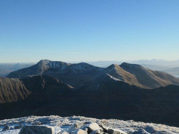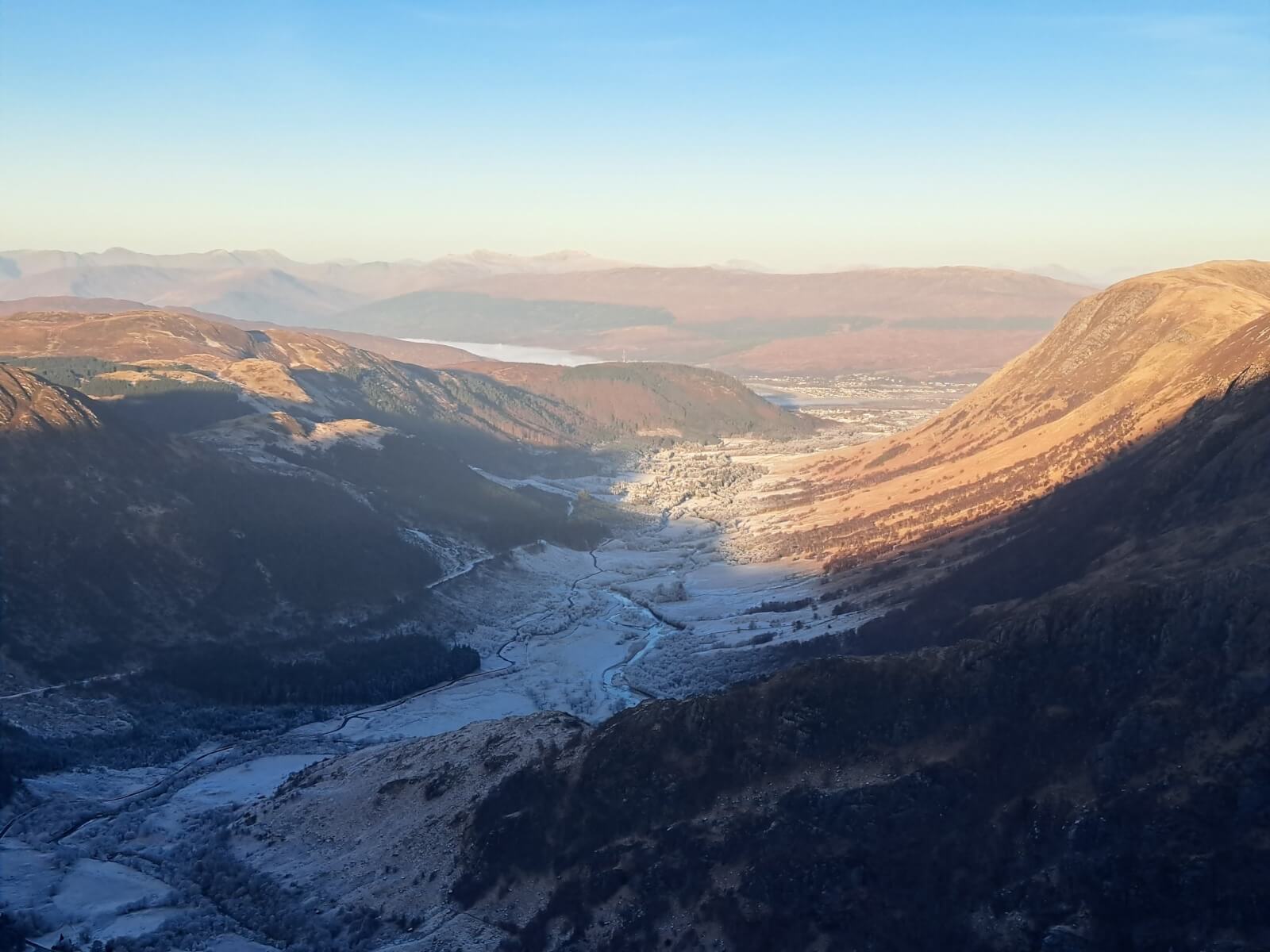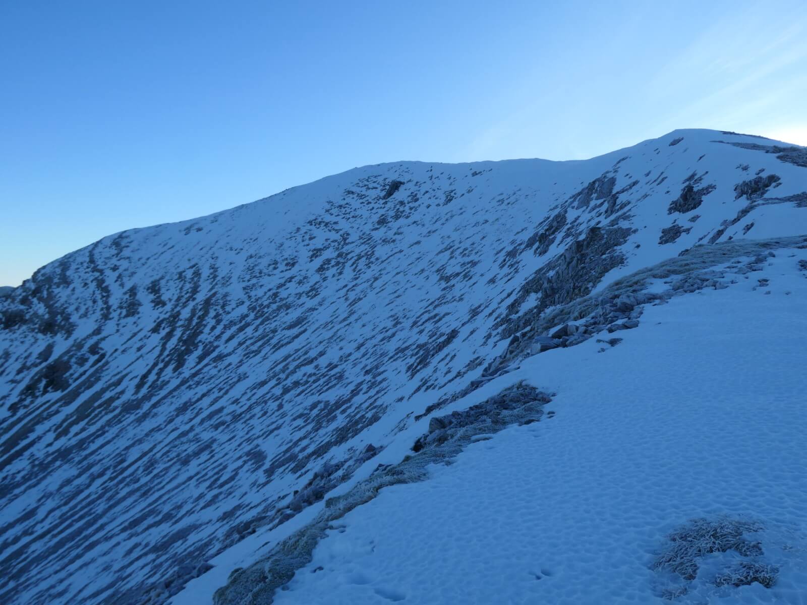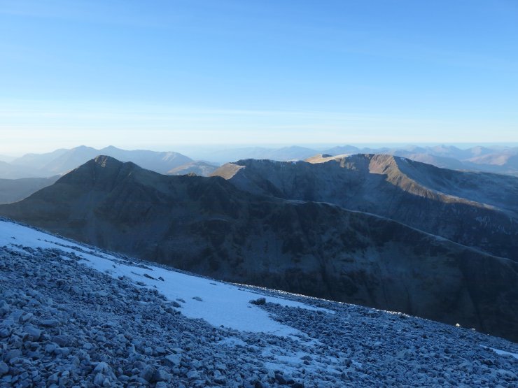Ben Nevis, Carn Mor Dearg and Aonach Mor from the South. This is the less snowy side with better cover on Northern and Eastern aspects.