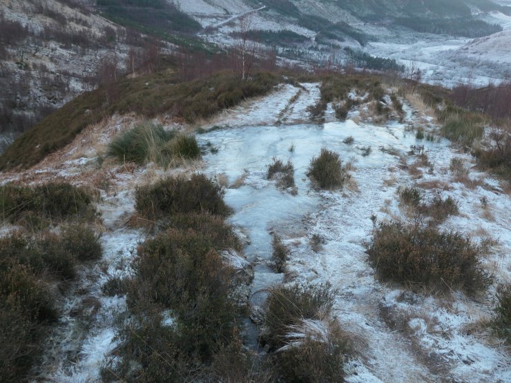 It was another beautiful day with sunshine and light winds. It was cold with sub zero temperatures at all elevations and little change in temperature with height. Lowest temperatures were in shady valleys and on higher summits with slightly warmer conditions in between.