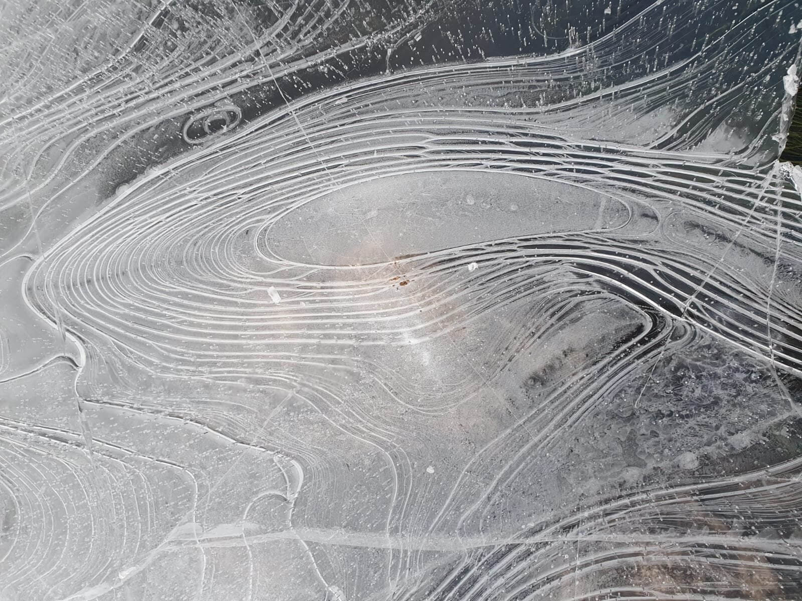 Patterns in ice left high and dry as the water level of the loch has slowly dropped since it initially froze a few day ago.