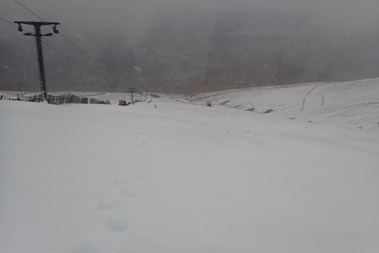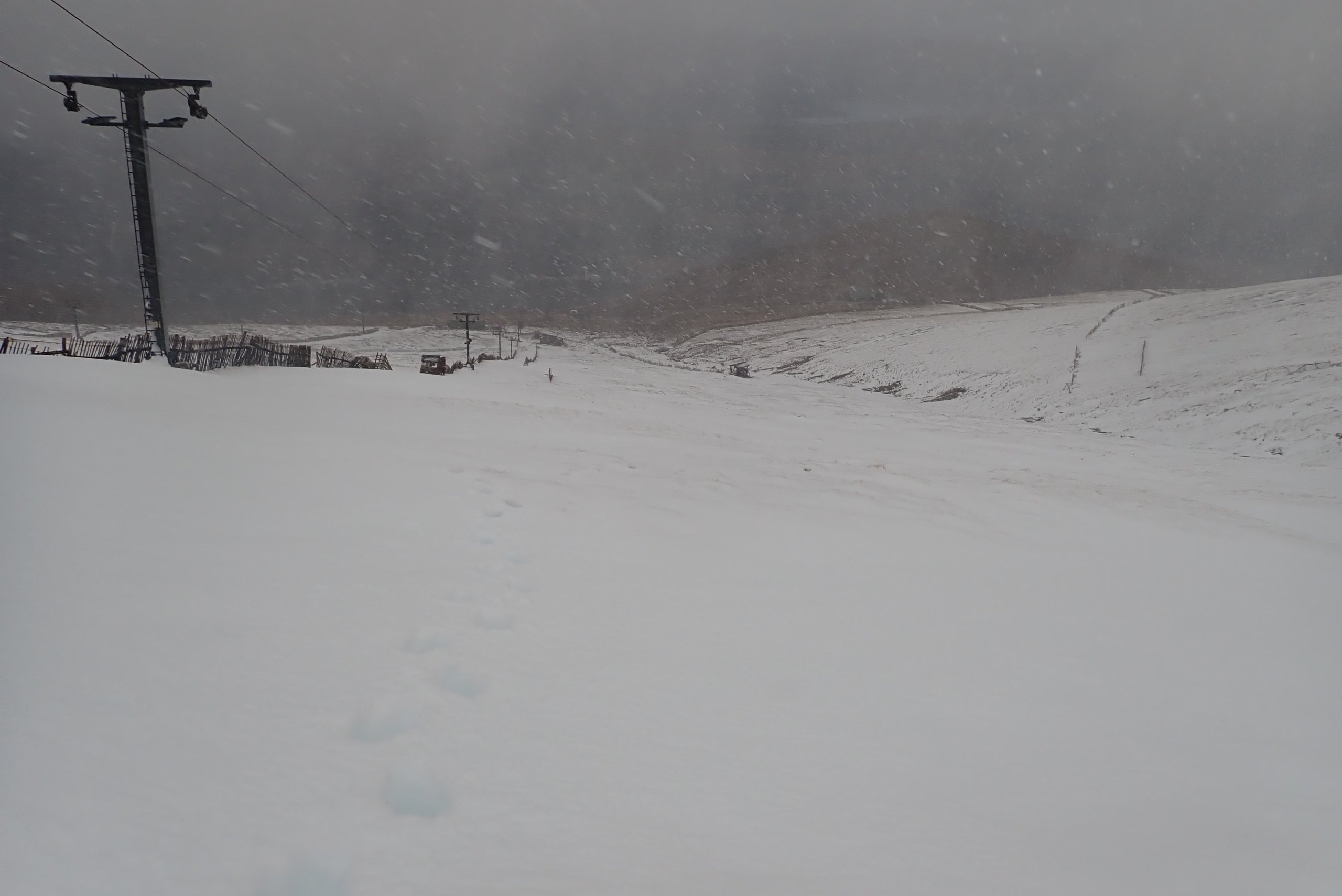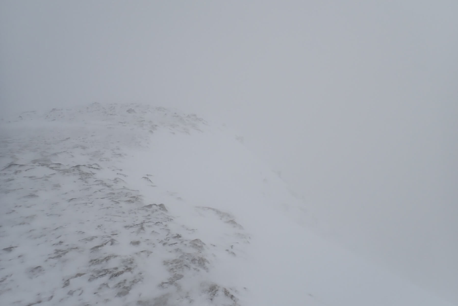 Approaching the top of the ski area. Conditions were pretty wild at this level with heavy showers of graupel being blown on by 50 mph winds.