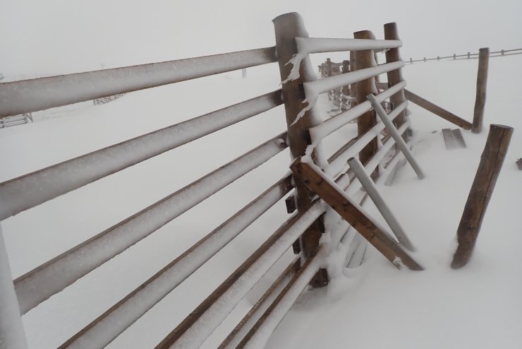 Icing on a snow fence at 1100 metres. The wet conditions and varying freezing level has resulted in icing at higher levels.