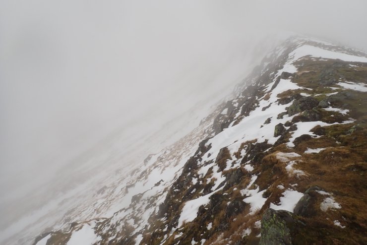 However, look the other way (and this photo was taken in rough the same place to the previous one) and there are areas where you could top out of Coire an Lochan hardly touching snow.