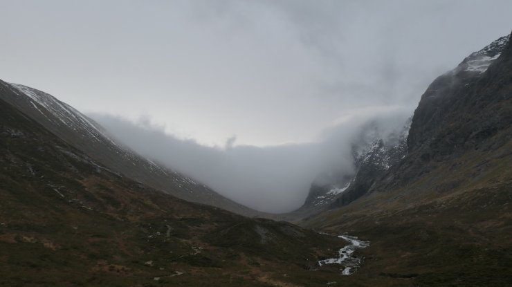 Cloud in Coire Leis. This remained there all morning while cloud cleared from the rest of Ben Nevis.