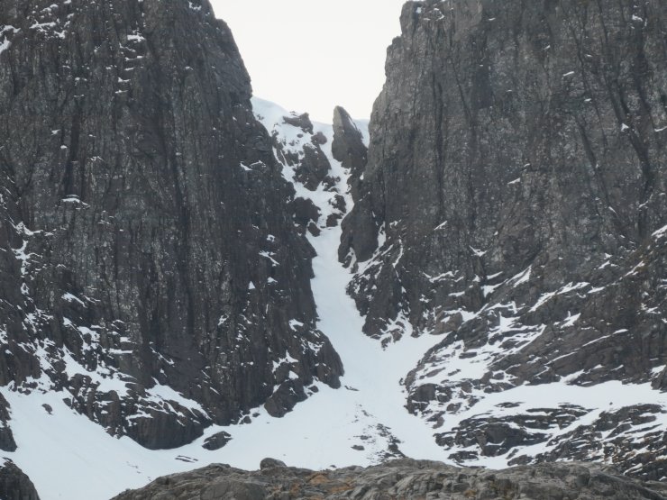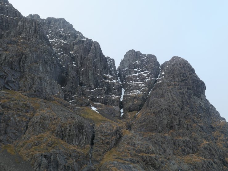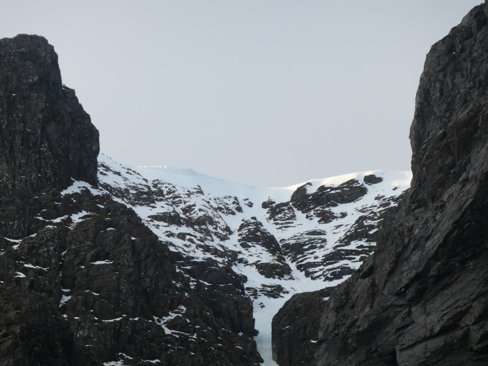 Today was clearer than expected giving me a chance to get a good look at how much snow is left on the Northern part of Ben Nevis which was clear. There was thick cloud in Coire Leis all morning with thinner cloud extending into Observatory Gully much of the time.