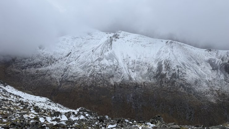 Today the freezing level hovered around 1150m, but there were icy patches above 650m. This gave variable conditions underfoot with icy patches, breakable crust and hard snow. Very poor visibility when I was up high limited photography opportunities.