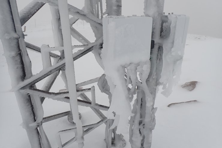 The mobile phone mast on Aonach Mor covered in a thick layer of icy rime as were most objects above about 1100 metres. I suspect many of the crags would also be quite verglassed at the moment.