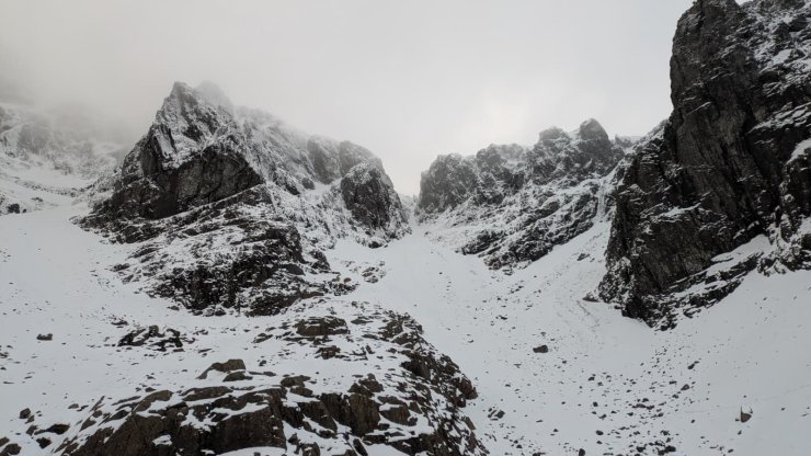 A view of the Left side of Coire nan Ciste on Ben Nevis today courtesy of Abacus Mountain Guides. All but the steepest crags are holding a fair bit snow/ice. I would doubt this would be very good snow ice yet, but it is definitely a step in the right direction. Let’s hope it survives the mild temperatures forecast for the next few days.