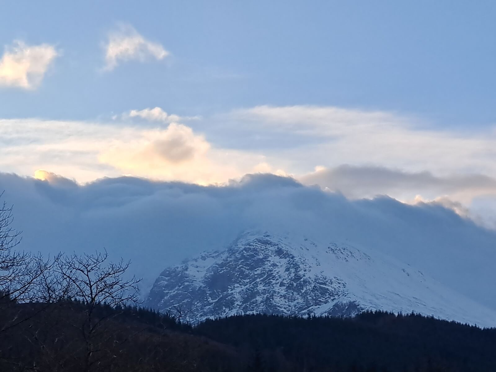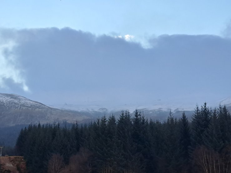 There were gusts of over 70 mph this morning and that was at just 650 metres on the ‘sheltered’ side of Aonach Mor which made getting high challenging. While there were clear skies over much of Lochaber at this time, the summits remained in the cloud as the photos below show. As the day went on the cloud cover became more widespread and the winds eased.