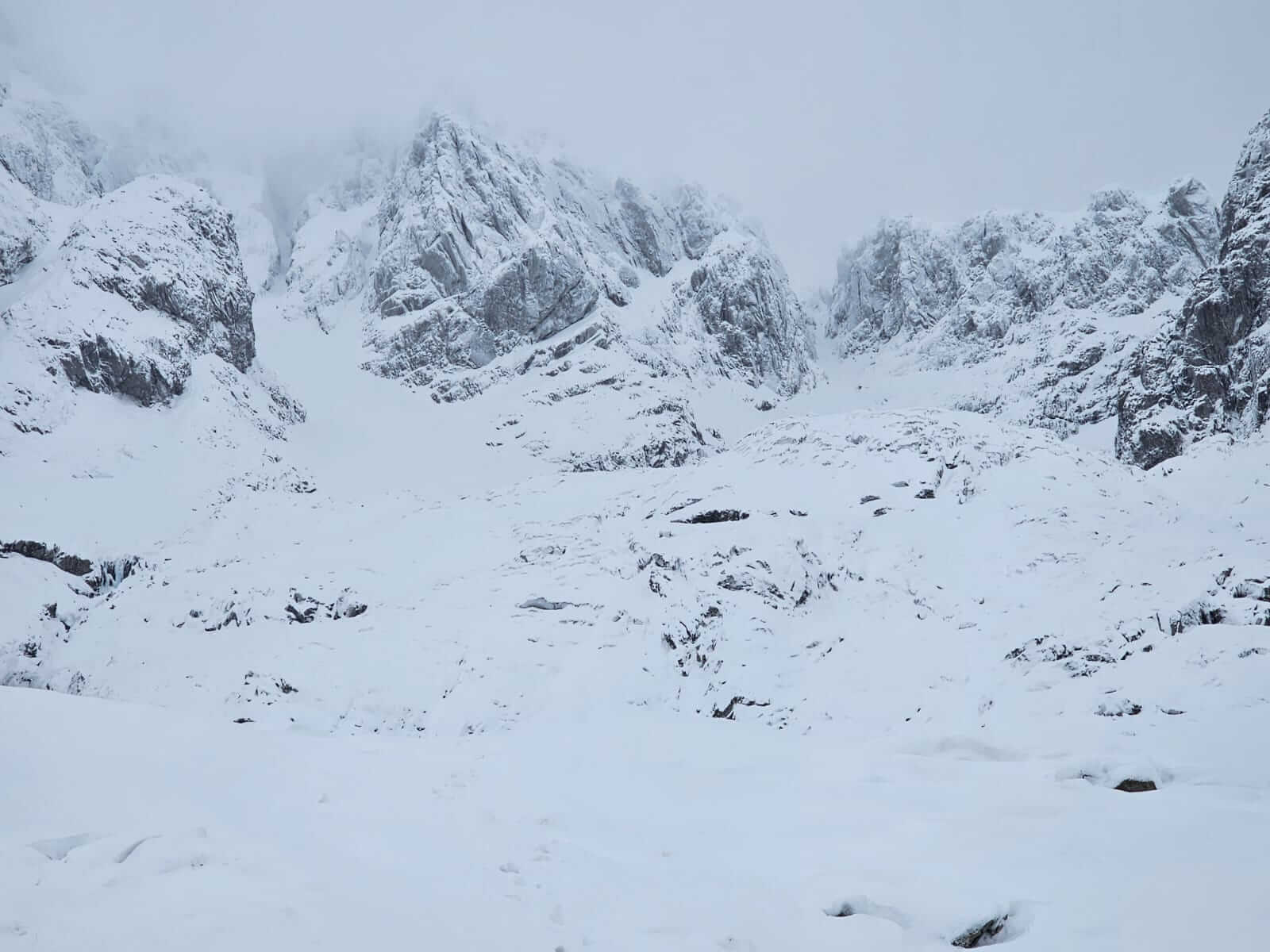 Little had changed from yesterday with lots of fresh soft snow and at higher elevations, moderately and poorly bonded windslab on many aspects. Whilst it has remained mainly dry overnight and through the day, the strong Southerly winds were notably redistributing snow, with temporary whiteout conditions, building on the already unstable snowpack above 1000 metres and with variable winds cross loading around the gullies, cories and buttress’s, North-West through North to South-East aspects were all being affected. Cornices were fragile with collapsed debris witnessed in Observatory Gully.