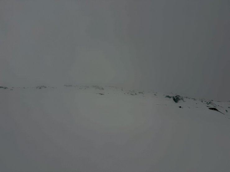 Very strong winds were the main feature of today, particularly strong gusts which although mainly East-South-Easterly were often variable with some gusts from other directions. Significantly less snow fell than was forecast and the freezing level rose through the day to around 900 metres, visibility was poor for most of the day. Given the variable wind gusts while most windslab deposits will be on South-west through West to North aspects more isolated pockets are possible on any aspect. A similar situation for tomorrow with further snow showers and strong East-South-East winds forecast. The older snowpack is well bonded and frozen. Visibility limited photos today.