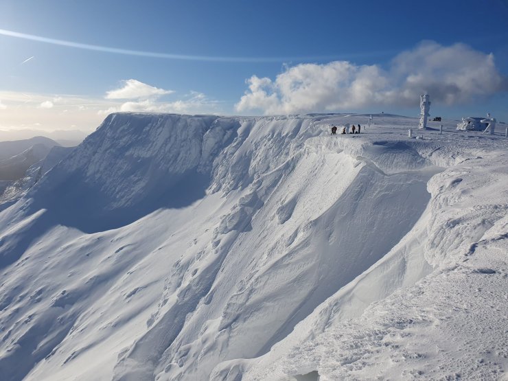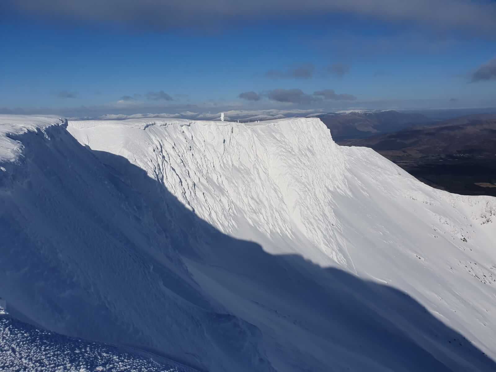 Climbers preparing to abseil into Left Twin on Aonach Mor. The South Side of Coire an Lochan behind. It is a long time since I have seen the crags looking so buried, I can’t recall them looking like this since the winter of 2013-14 which was a very snowy winter at higher levels.