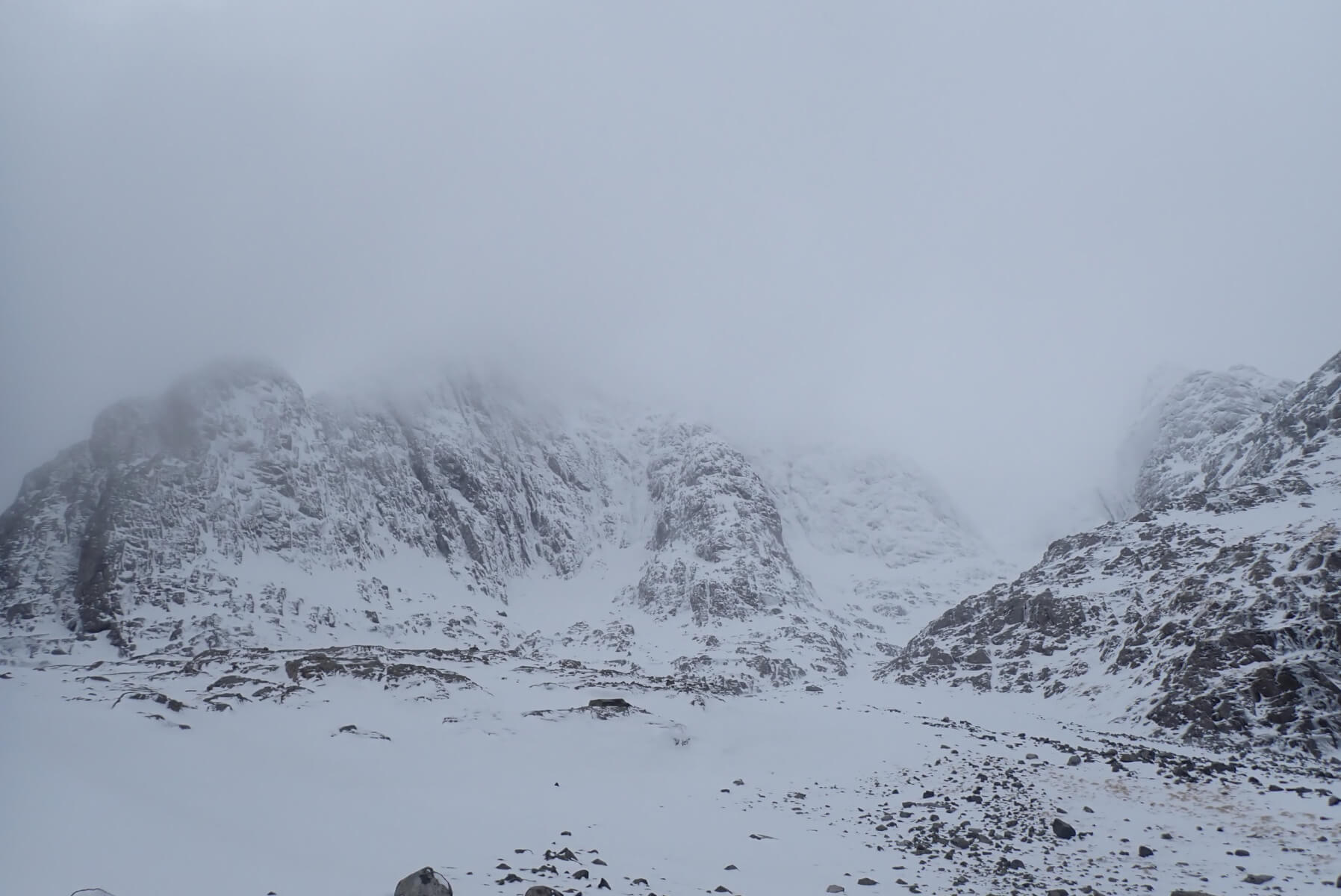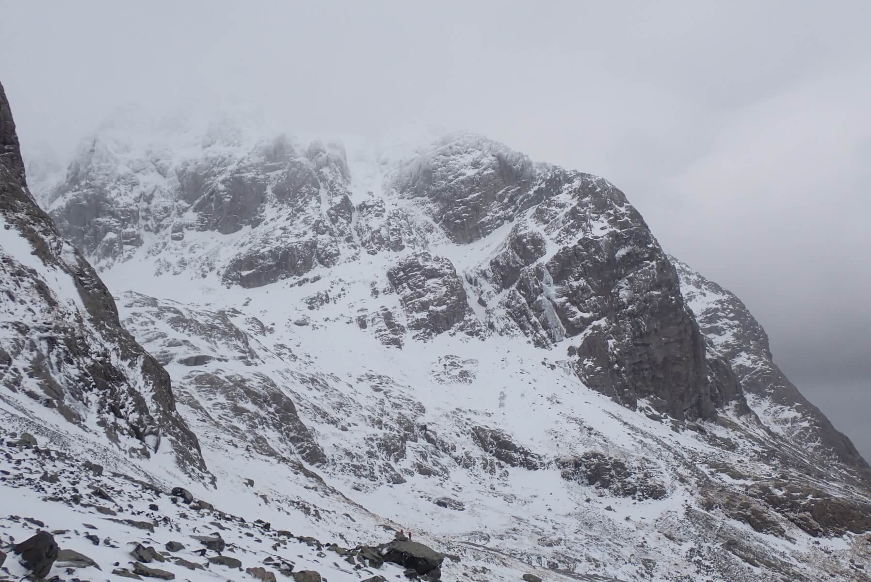 The crags disappearing into the cloud. Observatory Ridge in the centre of the photo.