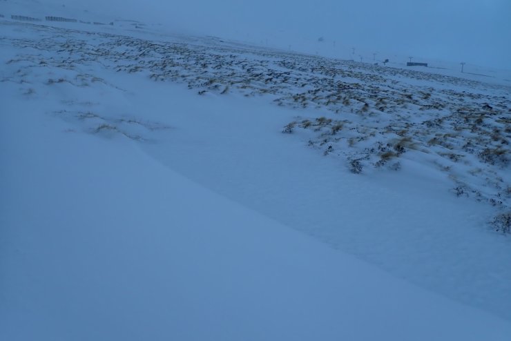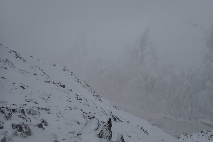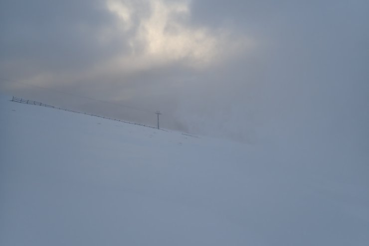 There was a fair bit of snow blowing. In this shot a cloud of snow was about to come in from the right and within a few seconds visibility dropped to a few metres.
