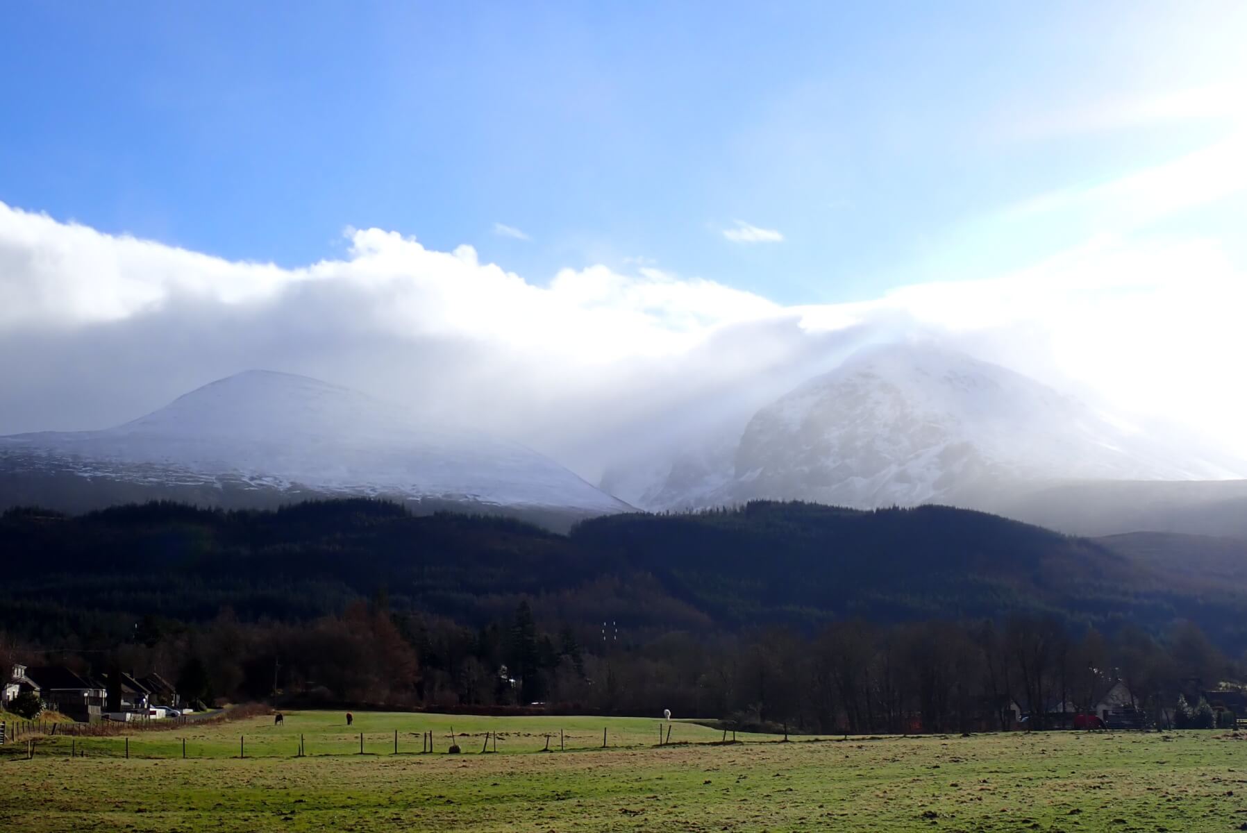 Early afternoon there were some lovely spells of sunshine down the in the glens, but the higher tops remained in the cloud (again).