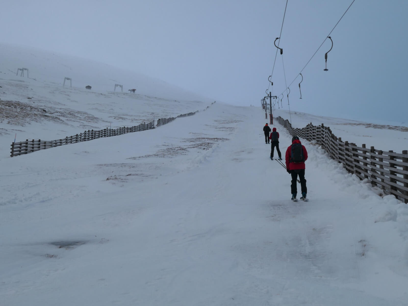 Looking down the Goose from around 1000 metres. Very good snow cover at this height. Firm but grippy snow here but more icy lower down where there’s been more melt/freeze cycles.