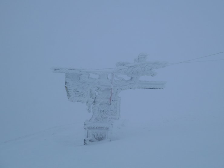 It was another day with poor visibility on the tops. The temperature dropped and the snowpack surface is mostly firm and icy with a breakable crust under foot in some locations. There was a very small amount of overnight snow creating fresh windslab in very sheltered areas.