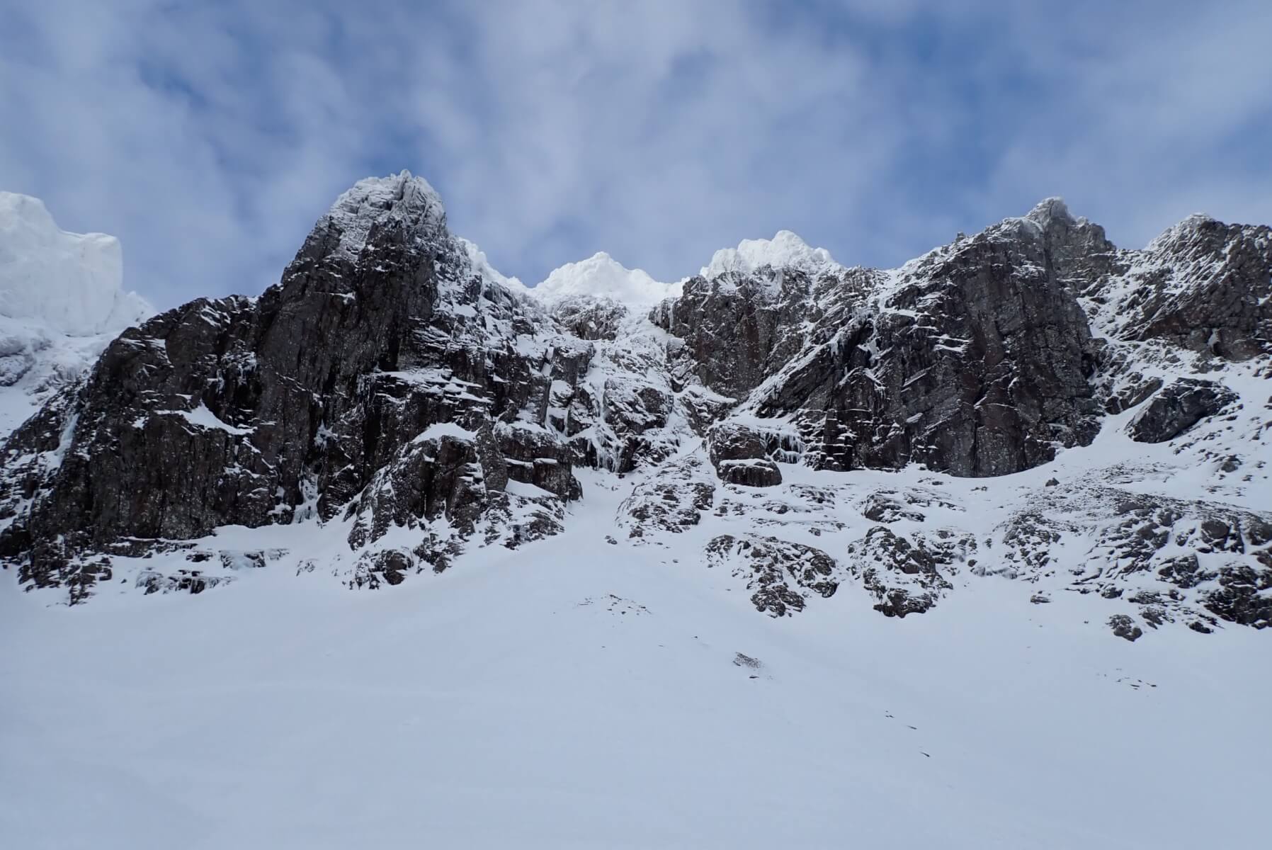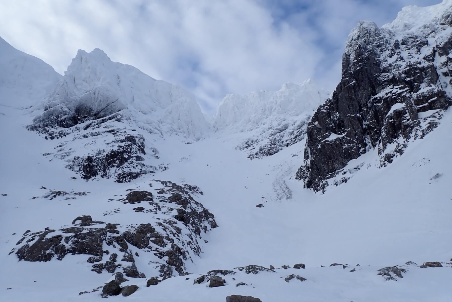 Coire na Ciste. A lone pair of climbers can be seen directly below Number 3 Gully. The Coire was surprisingly quiet with just two pairs visible in the Coire, having just spoken to my colleague from Creag Meagaidh it sounds like everyone went there today.