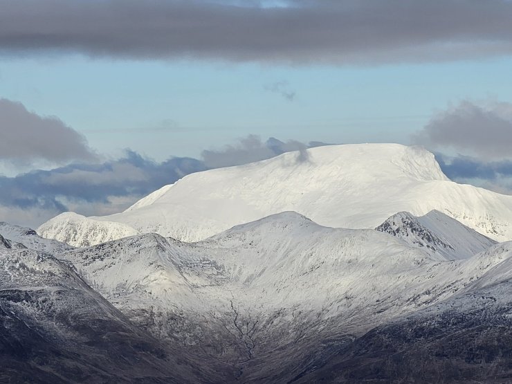 For the first time in what feels like a long time, the summits were clear and there was even some nice spells of sunshine. I had a wander up the Ben to see how it was looking there. Found a few wee patches of windslab, but not a great deal. More slab could be seen on the other side of the Allt a’ Mhullin on the slopes of Carn Mor Dearg. Looked to be enough to keep the hazard at moderate, but it does feel to be at the bottom end of the moderate hazard band. Little change expected tomorrow.