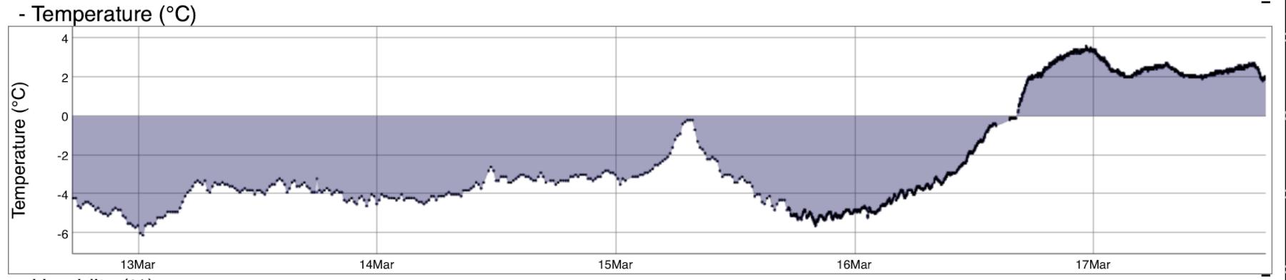 There was a pretty significant rise in temperature last night as seen in the graph below