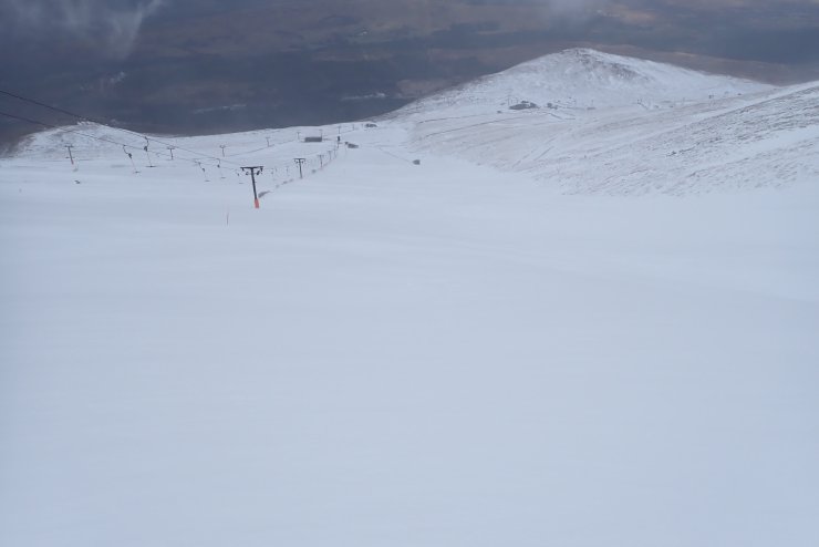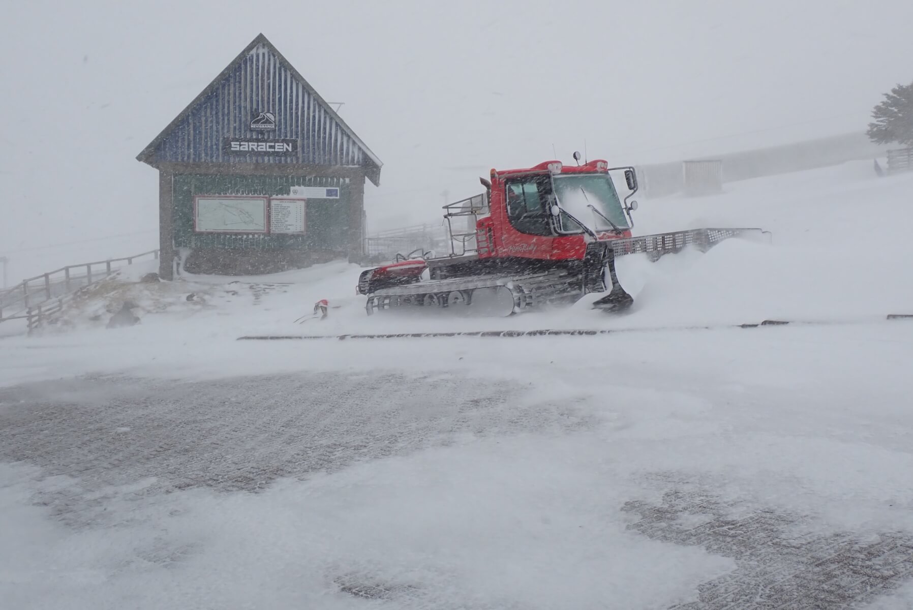 There were some heavy snow showers during the morning. It was quite wild as I passed the parked piste machine by the top station.