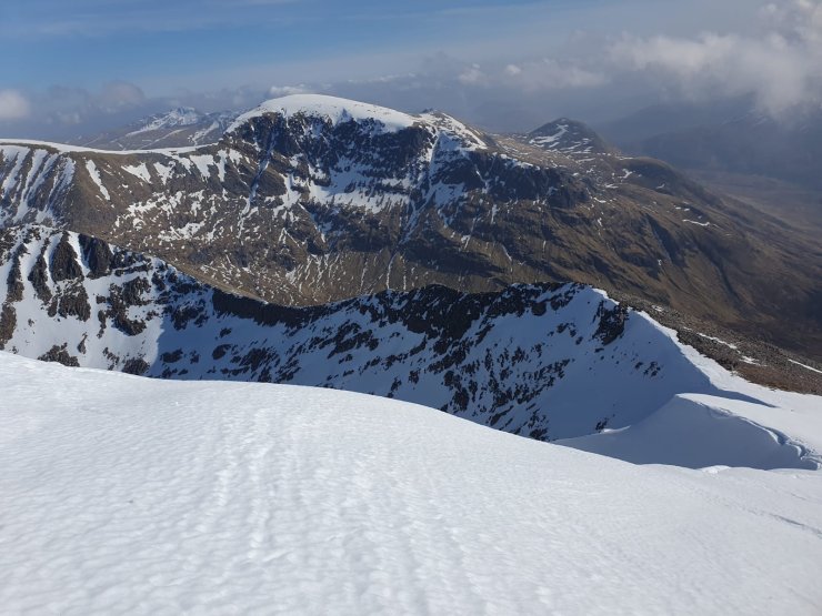 Another mild dry day in Lochaber, cloud this morning gradually cleared through the day to give a sunny afternoon. Observations today were from the Grey Corries with some photos sent in from Ben Nevis where rock and icefall was heard. The snowpack was soft particularly where in the sun with remaining cornices also affected by the sun.