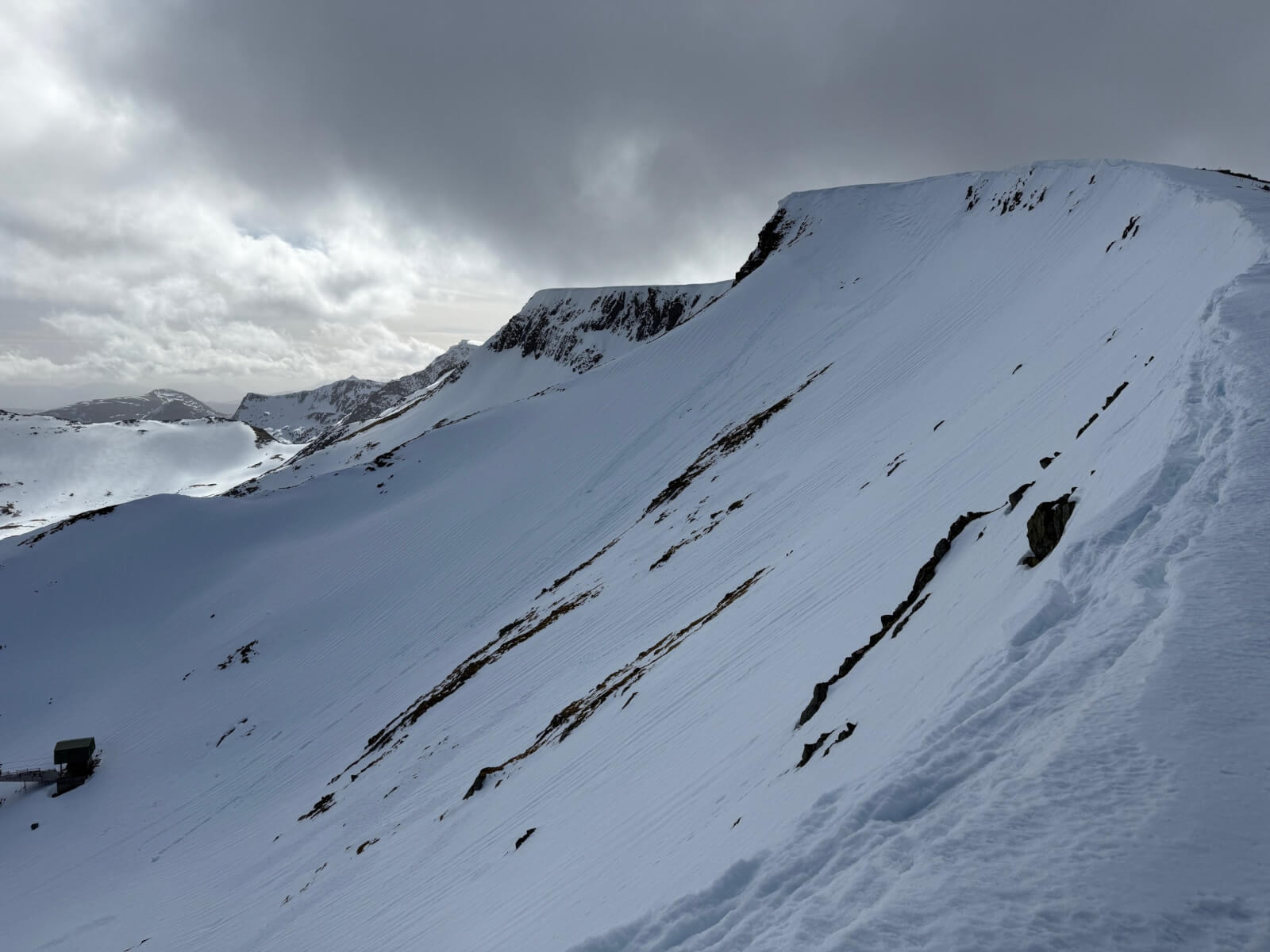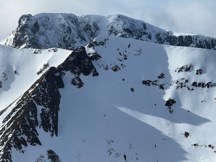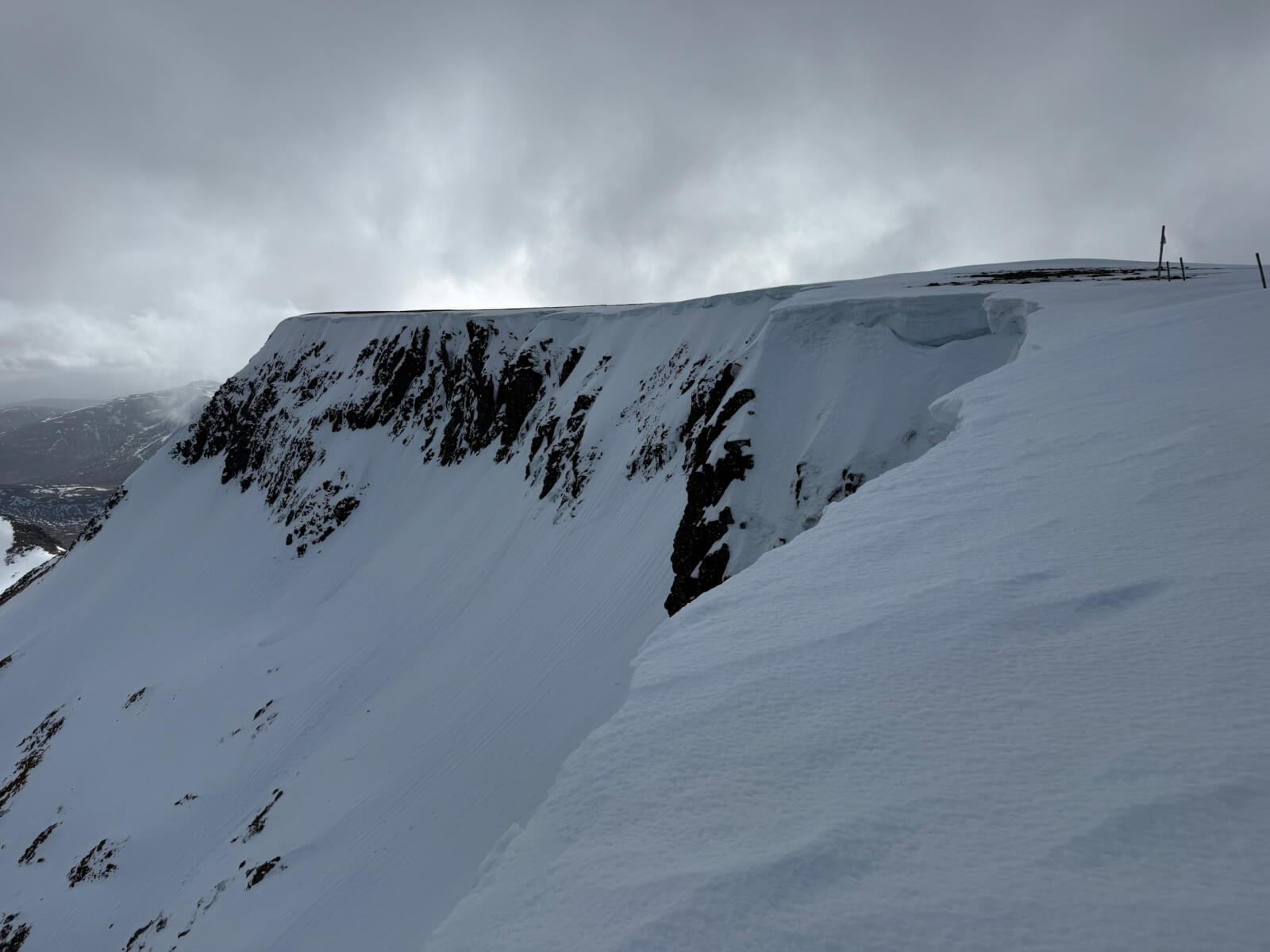 The crags above Coire an Lochain, Aoanach Mor. Some cornices remain here.