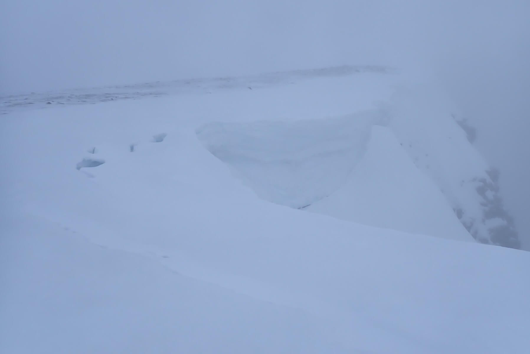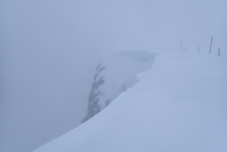 Some substantial cornices remain, but with signs of cracking, slumping and general instability in the mild conditions
