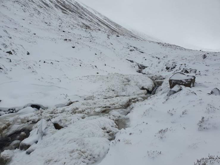 Plateau areas and slopes exposed to the strong winds were scoured and icy.