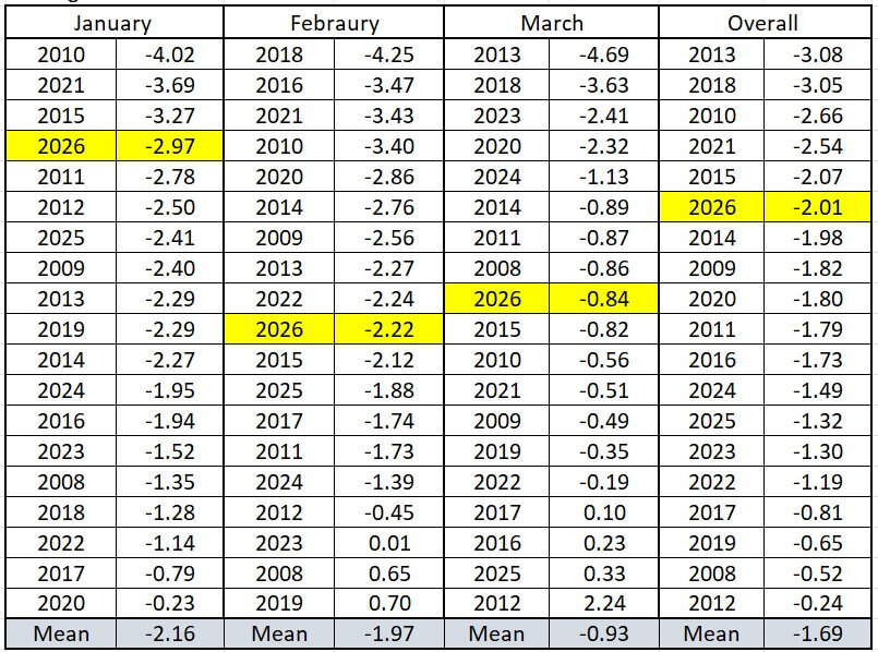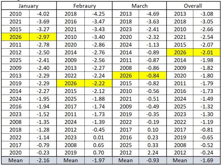The Aonach Mor summit temperature for January, February and March for the past 19 years ranked coldest to warmest. As can be seen January was relatively cold while February and March were around average. Overall it was the 6th coldest Jan-March period.