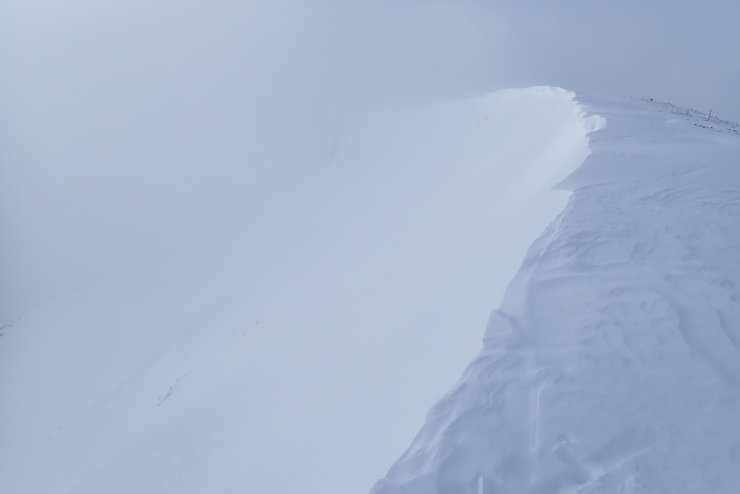 It was a pleasant and settled morning. Despite an early start it clouded in just as I reached the plateau, so the views over to Ben Nevis or Aonach Beag were not to be. There had been a reasonable amount of overnight snow, and a couple of small cornice triggered avalanches were noted.