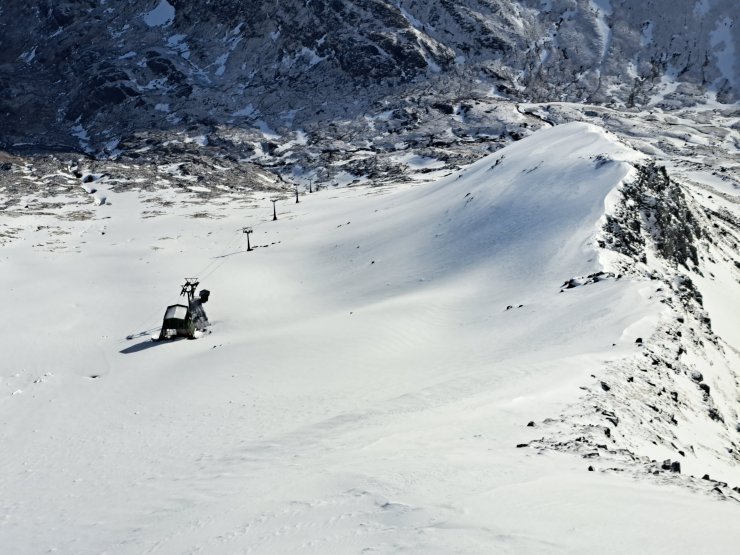 The older snowpack has frozen and become firm. Localised areas of shallow windslab were present mainly on South and South-East aspects with much of it lying on bare ground.