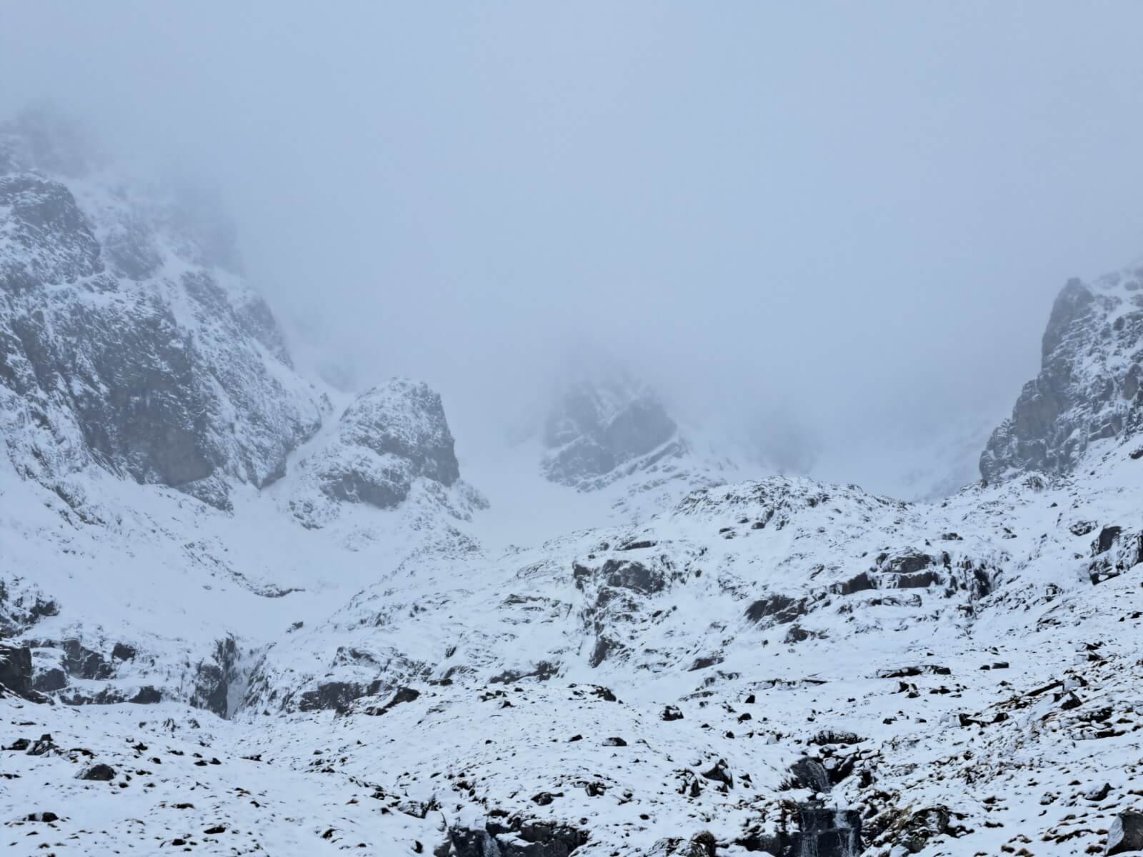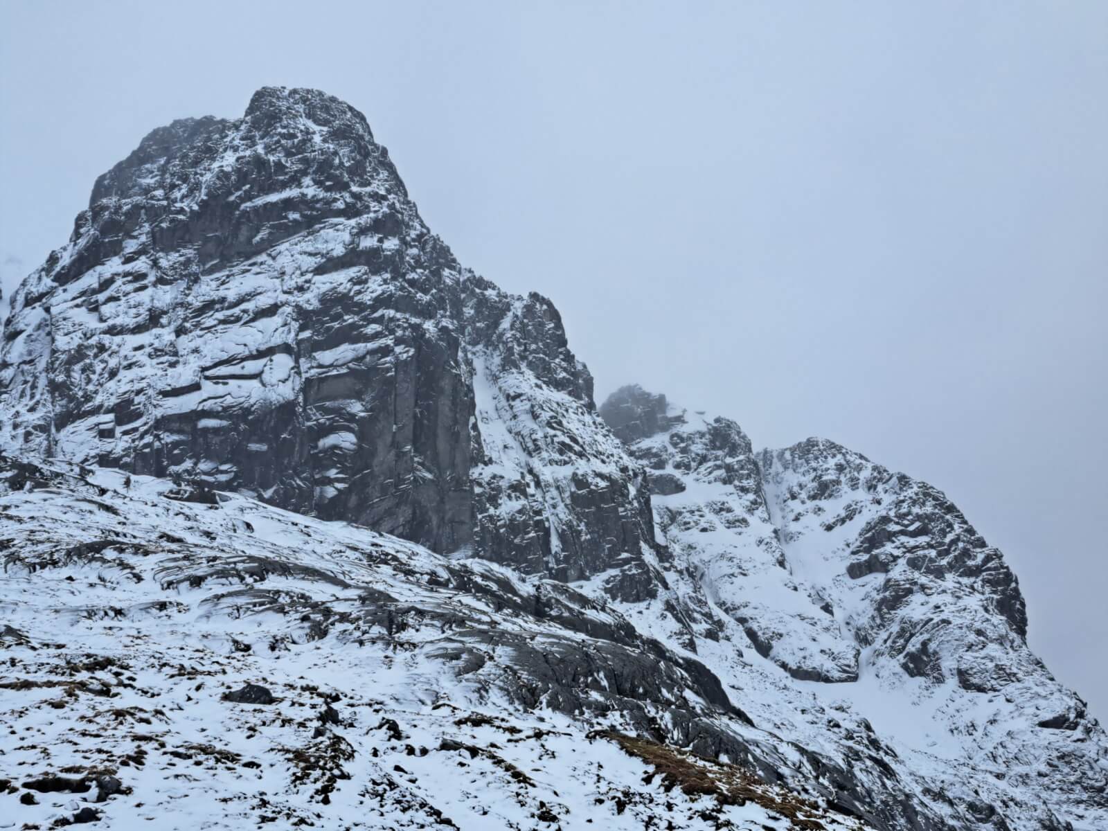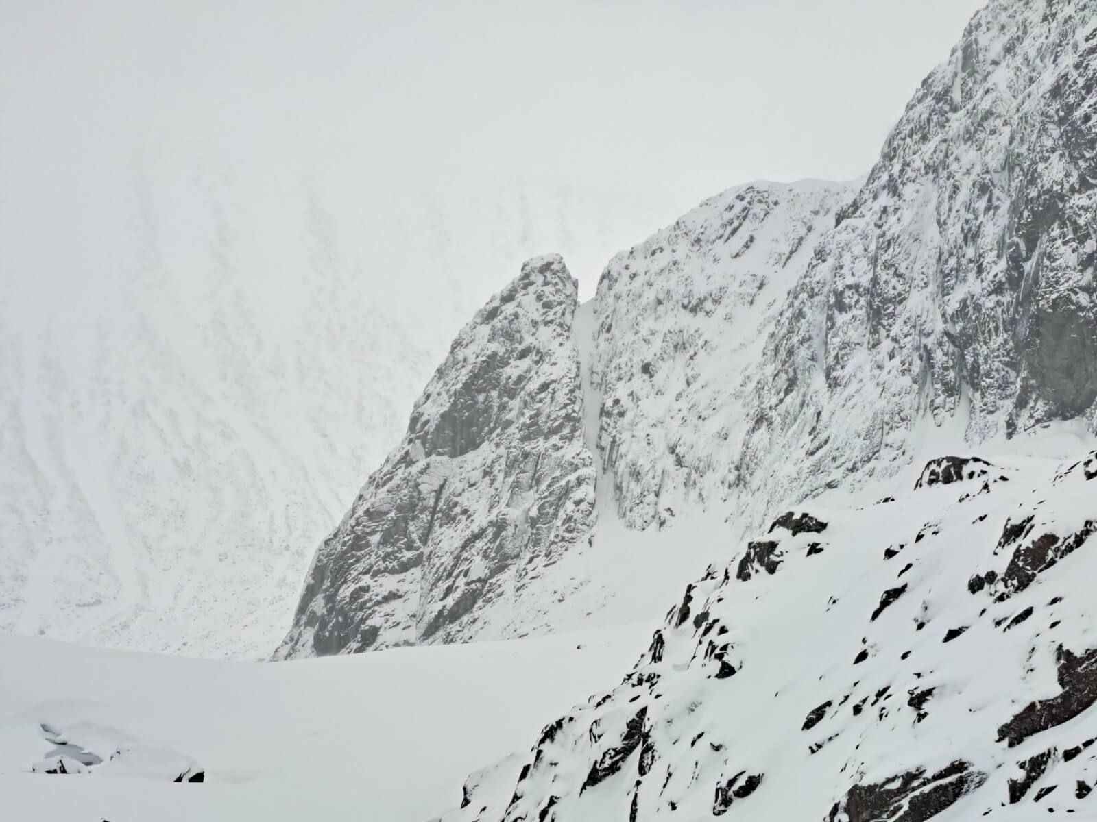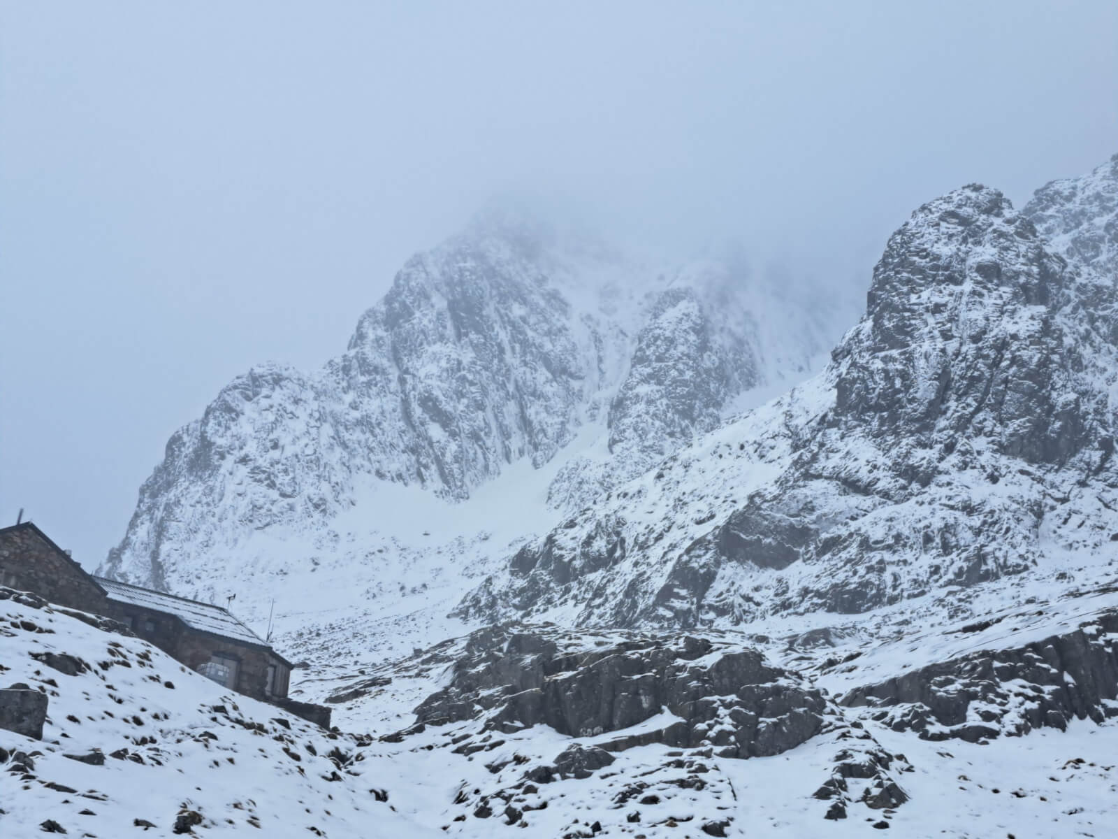 Looking up past the CIC hut. The 3 main ridges visible are North-East Buttress, Observatory Ridge and Tower Ridge.