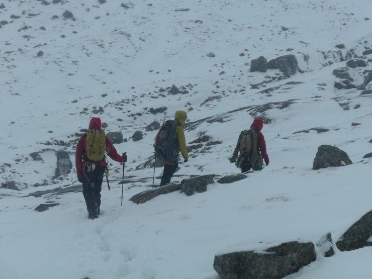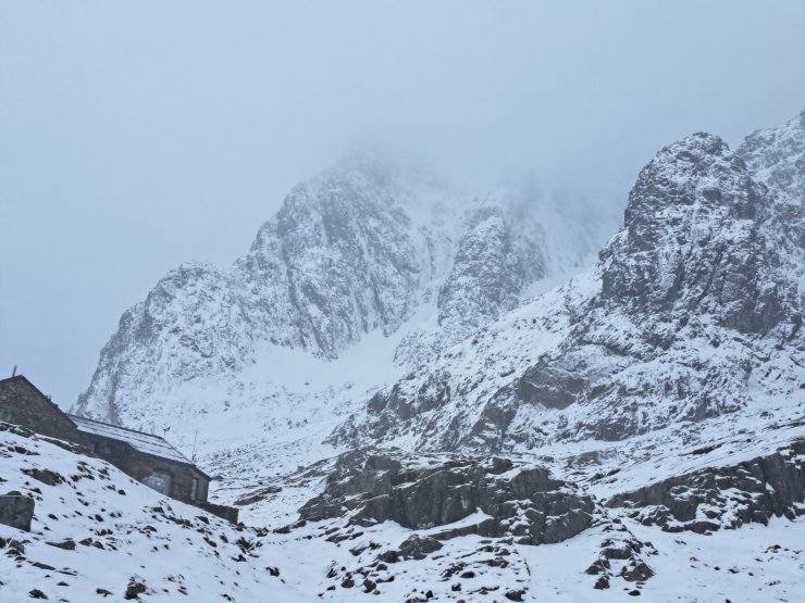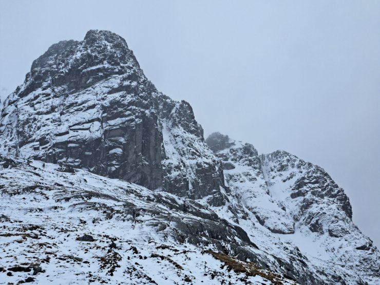 Some heavy showers overnight and through the day have put down quite a bit more snow. Combined with strong winds and poor visibility at times it was still very wintery on Ben Nevis today.
